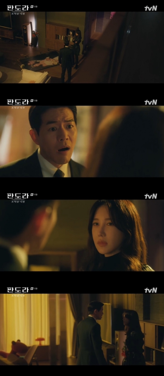 15일 방송된 tvN 토일드라마 '판도라 : 조작된 낙원'(이하 '판도라')에서는 표재현(이상윤 분)이 홍태라(이지아 분)가 두 사람의 결혼사진을 깨부숴둔 것을 보고 분노하는 장면이 그려졌다.