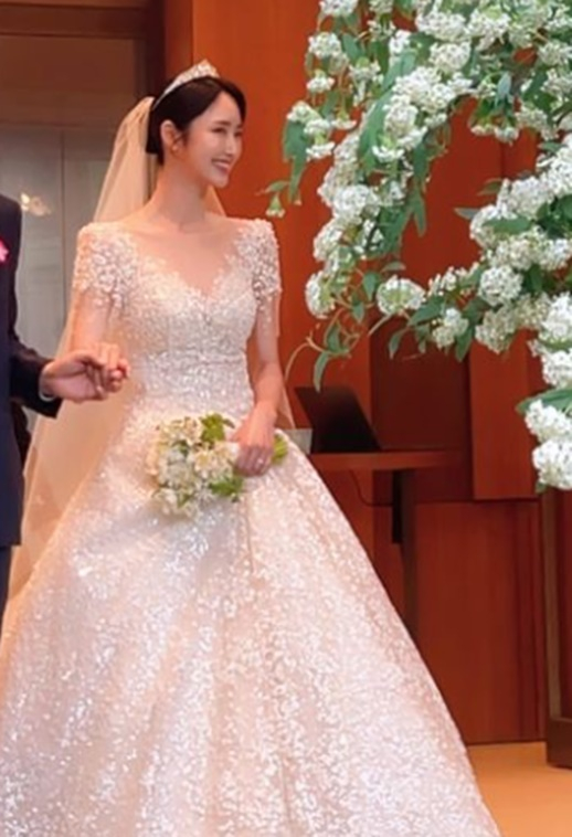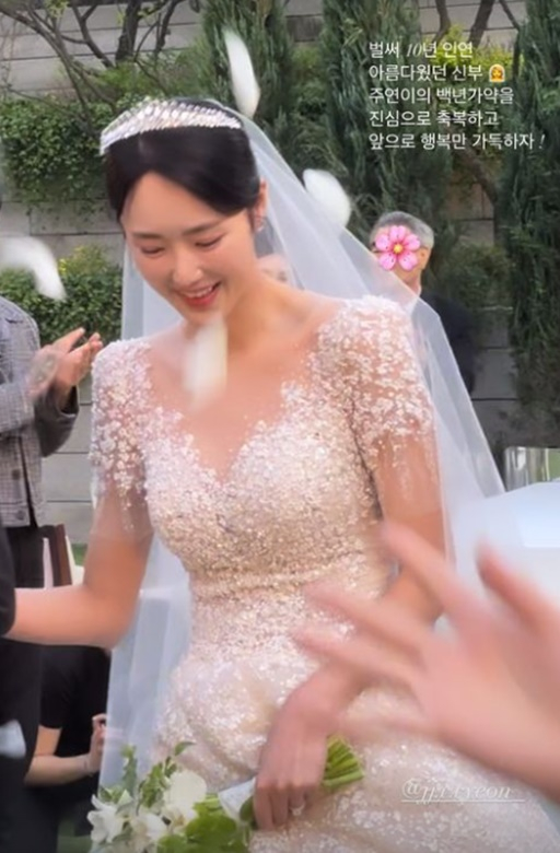 공개 된 사진 속 정주연은 행복한 미소를 지으며 결혼식을 올리고 있다.