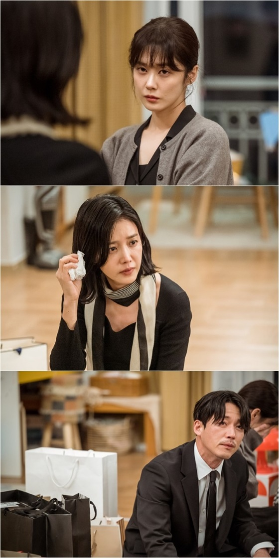 권도훈은 아내 강유라와 상사 오천련 사이에서 안절부절못하고 있는 모습이다. 대역 죄인이 된 듯 허공만 응시하는 그의 모습에서 자리를 벗어나고 싶은 초조함과 절박함이 동시에 느껴진다. 이와 함께 권도훈 뒤로 폭풍 오열하는 듯한 강유라의 자태가 포착됐다.