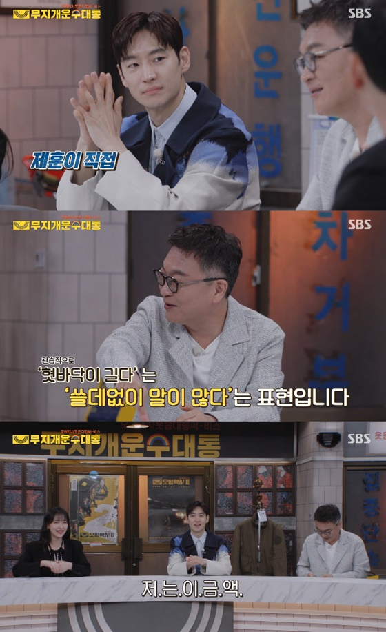 지난 21일 방송된 SBS 드라마 '모범택시2' 종영 스페셜 방송 '모범택시 웃음대행 써-비스 무지개 운수대통'에는 이제훈, 김의성, 표예진, 장혁진, 배유람이 출연해 이야기를 나눴다.