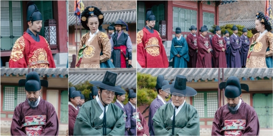 제작진은 안내상-이준혁-현우-남기애가 궁궐을 발칵 뒤집은 '불길함 고조 4각 대치' 장면을 공개하며 휘몰아칠 서사를 예고했다. 극 중 궁궐에 누군가가 잡혀 오자 파란이 일어난 상황. 사람이 붙잡혔다는 소식에 궁궐이 들썩인 가운데, 대비전에 있던 대비도 동요하며 서둘러 추국장으로 향한다. 이어 이창은 추국장까지 쫓아온 대비를 비꼬며 날을 세우고, 대비는 경계의 눈빛으로 겁박 된 사람을 세밀하게 살핀다.
