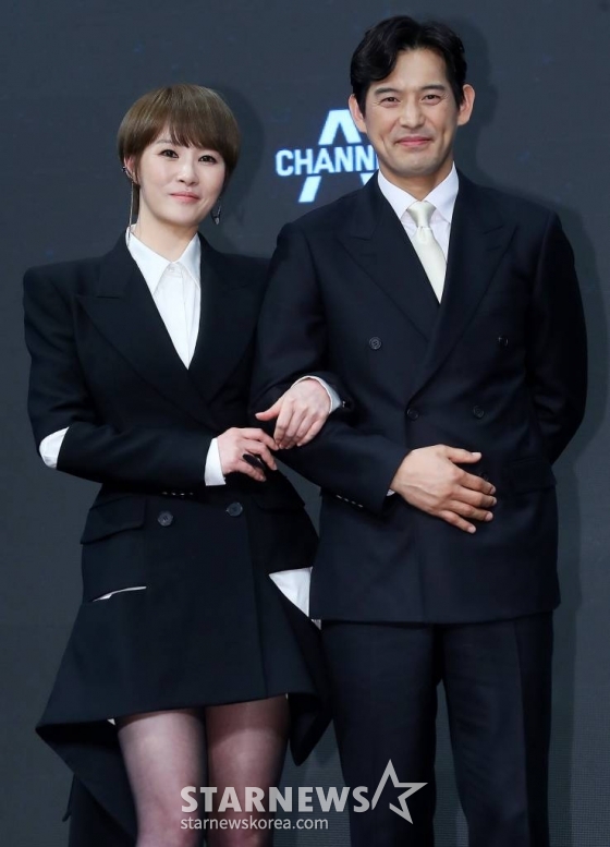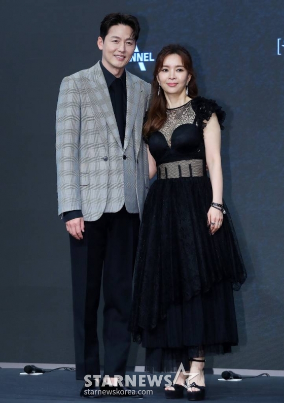 배우 김선아, 오지호가 24일 오후 서울 구로구 신도림동 더 세인트 웨딩에서 진행된 채널A 월화드라마 '가면의 여왕' 제작발표회에 참석해 포즈를 취하고 있다. '가면의 여왕'은 화려하게 성공한 세 여자 앞에 10년 전 그녀들의 거짓말로 살인자가 된 절친이 나타나면서 가면에 감춰져 있던 진실이 드러나고, 한 남자로 인해 인생의 소용돌이를 맞게 된 친구들의 욕망이 충돌하는 미스터리 멜로 복수극이다. 2023.04.24 /사진=김창현 기자 chmt@