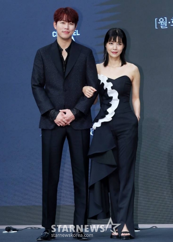 배우 신지훈, 유선이 24일 오후 서울 구로구 신도림동 더 세인트 웨딩에서 진행된 채널A 월화드라마 '가면의 여왕' 제작발표회에 참석해 포즈를 취하고 있다. '가면의 여왕'은 화려하게 성공한 세 여자 앞에 10년 전 그녀들의 거짓말로 살인자가 된 절친이 나타나면서 가면에 감춰져 있던 진실이 드러나고, 한 남자로 인해 인생의 소용돌이를 맞게 된 친구들의 욕망이 충돌하는 미스터리 멜로 복수극이다. 2023.04.24 /사진=김창현 기자 chmt@