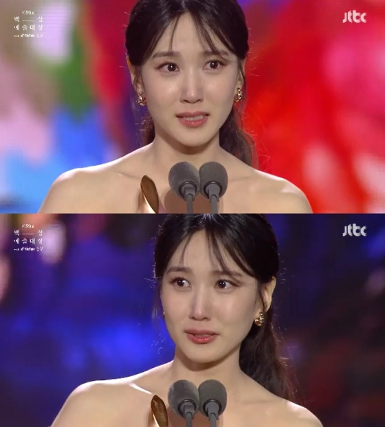 김갑수는 "어렸을 때부터 그렇게 살아와서 스피치가 안되는 건 포기하겠다. 그런데 대상을 받은 박은빈씨. 훌륭한 배우고 앞으로도 잘 하겠지만 울고 불고 코 흘리면서 아주"라고 박은빈의 시상소감을 언급했다.