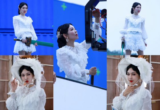 이와 달리 촬영 쉬는 시간에는 홍주의 화려한 성격이 드러나는 모자를 착용하고 카메라를 바라보며 사랑스럽고 귀여운 면모를 자랑하고 있다.