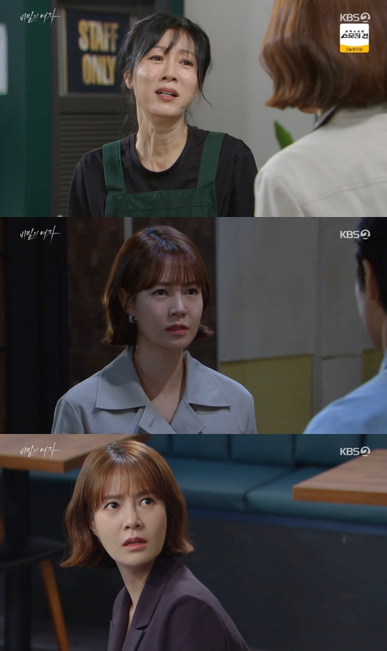10일 오후 방송된 KBS 2TV 일일드라마 '비밀의 여자'에서 오세린(최윤영 분)은 주애라(이채영 분)가 남유진(한기웅 분)을 잡기 위해 가짜 교통사고를 꾸몄다는 사실을 알았다.