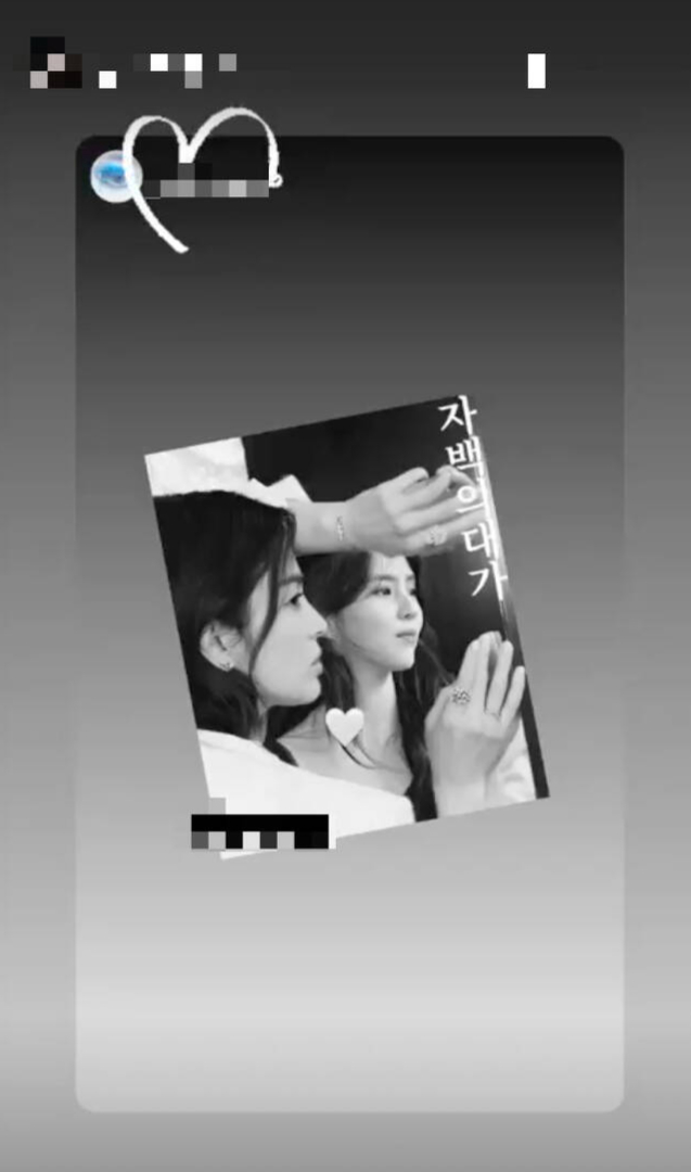 커피차까지 주고받으며 개인적인 우정도 쌓아간 한소희는 이날 송혜교가 게재한 영상에 댓글로 "그래두 내꺼"라고 답하며 '자백의 대가'로 인연을 맺지 못한 아쉬움을 못내 드러내기도 했다.