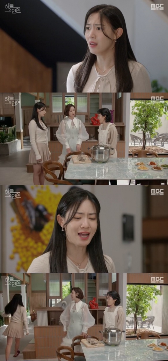 19일 오후 방송된 MBC 일일드라마 '하늘의 인연' 25회에서 강세나(정우연 분)가 하진우(서한결 분)을 오해하고 분노했다.