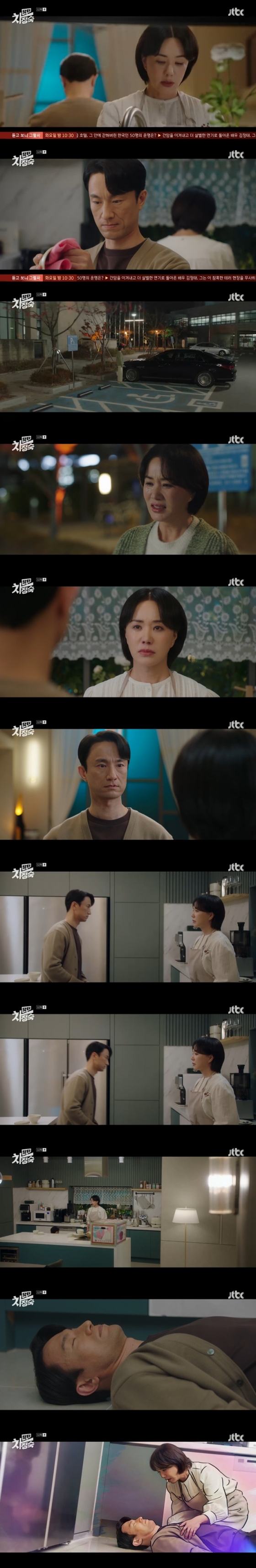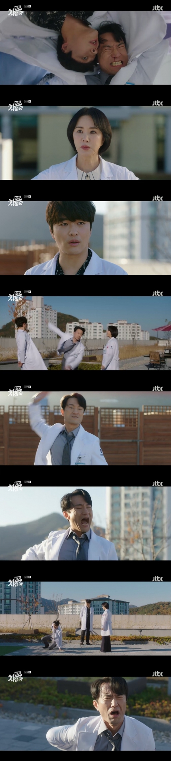 21일 방송된 JTBC 토일드라마 '닥터 차정숙'(이하 '차정숙')에서는 차정숙(엄정화 분)이 자신을 사이에 두고 몸싸움을 벌인 서인호(김병철 분)와 로이(민우혁 분)를 발견했다.