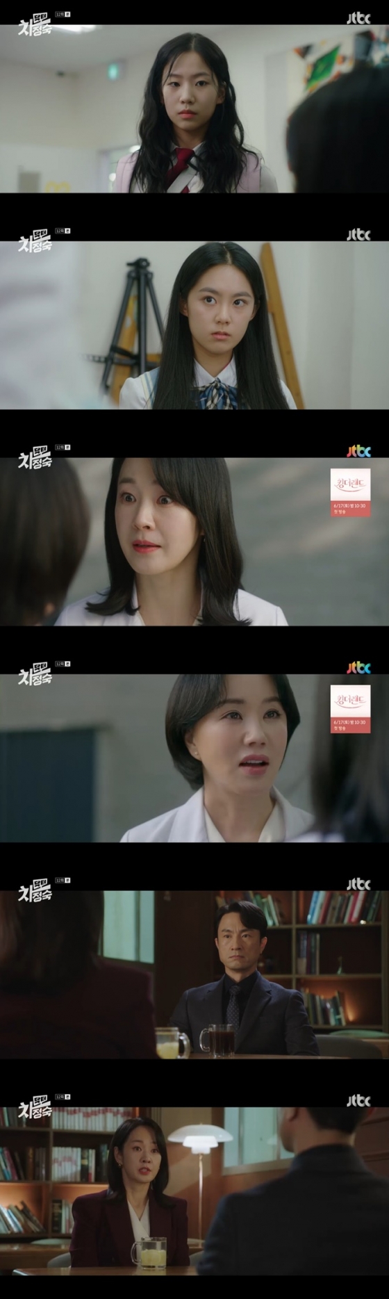 차정숙은 "대학 때 내가 임신해서 애 아빠랑 결혼한다 했을 때 너 졸업할 때까지 나를 벌레 보듯이 했어. 근데 고작 요 몇 달 죄인취급 받는 게 그렇게 억울해? 네 딸이 대학 1년 늦게 들어가게 된 게 그렇게 화가 나? 내 얼굴 보는 내내 네가 무슨 짓을 저질렀는지 절대로 잊어버리지 마"라고 경고했다. 그럼에도 최승희는 "그럼 네가 20년 넘게 꾸려온 가정, 나에게서 훔쳐간 그거 내가 도로 가져가도 되겠어? 난 병원 그만둘 생각 없어. 그만둘 거면 네가 그만 둬. 아니면 전부 까발리고 끝장을 보든지"라고 응수했다.
