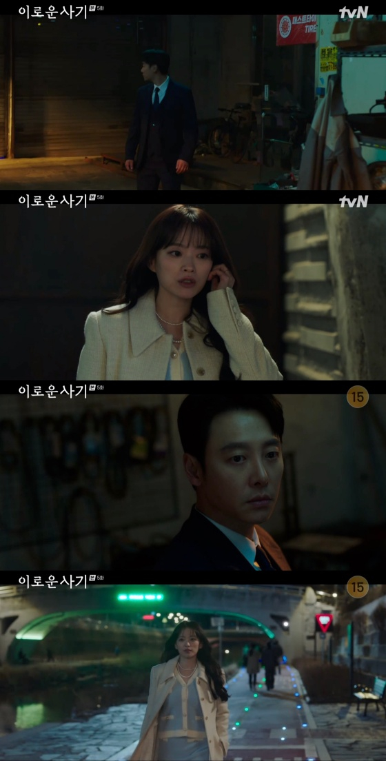 12일 방송된 tvN 월화드라마 '이로운 사기'에서 이로움(천우희 분)이 한무영(김동욱 분)을 배신했다.