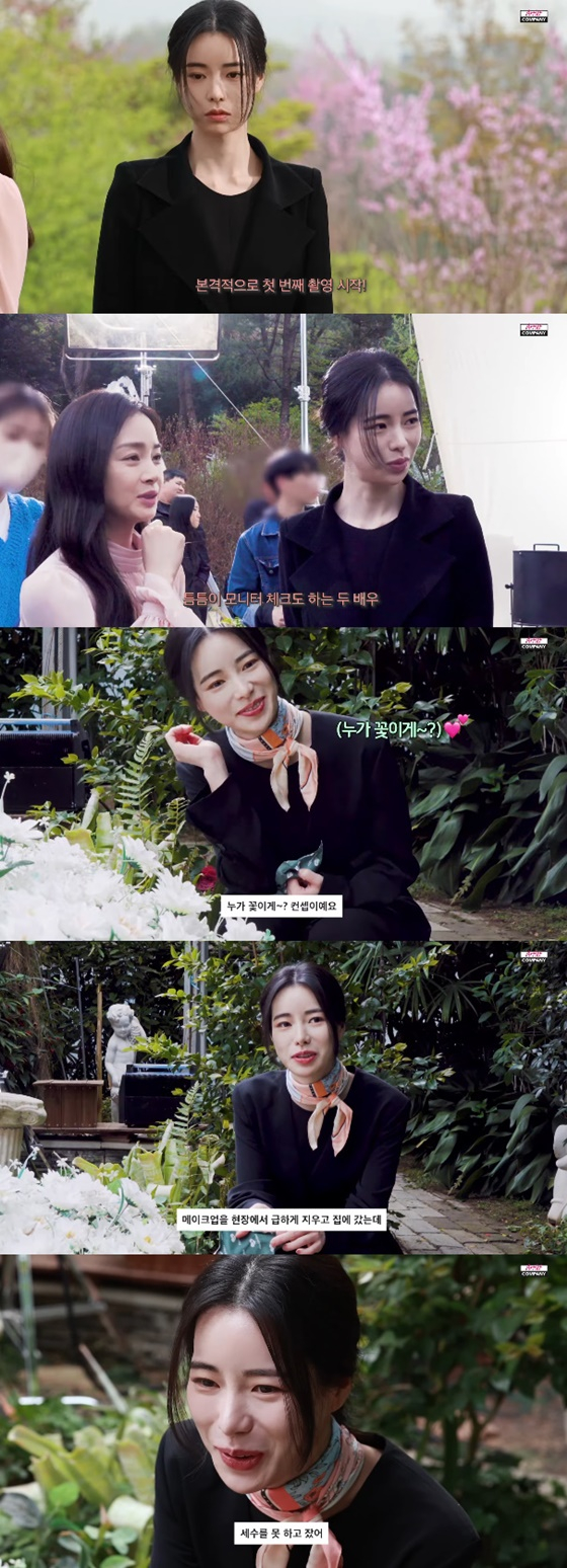 공개된 영상에는 지니TV 새 드라마 '마당이 있는 집' 포스터 촬영 중인 임지연의 모습이 담겼다.