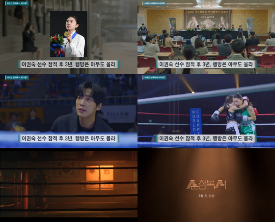 '순정복서'는 신박한 뉴스 콘셉트와 이권숙의 복잡다단한 심경이 담긴 티티저 영상 두 편을 공개, 과연 천재 복서 이권숙이 사라진 이유와 인생의 전부였던 복싱이 무서워진 사연은 무엇일지 본방송을 기대하게 한다.