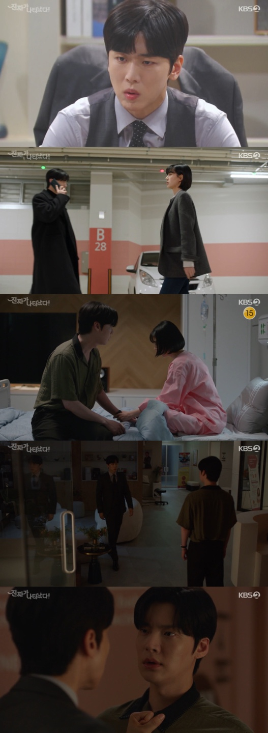 8일 오후 방송된 KBS 2TV 주말드라마 '진짜가 나타났다!'에서는 김준하(정의제 분)이 오연두(백진희 분)가 길가에 쓰러지는 것을 목격하는 장면이 그려졋다.