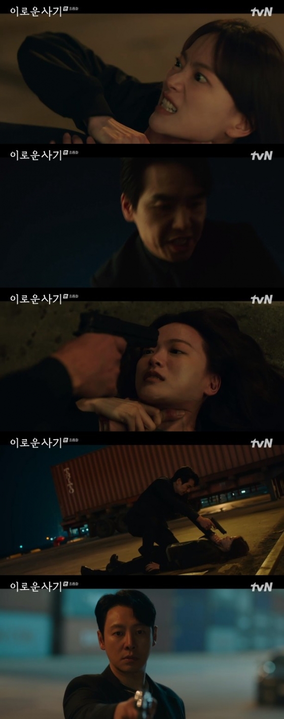 '이로운 사기'에서 김태훈이 천우희의 목을 조르며 위협했다.