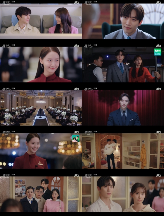 이날 구원(이준호 분)과 천사랑(임윤아 분)이 킹호텔 창립 100주년 기념행사를 성공적으로 마무리하는 모습이 그려졌다. 특히 행사 준비로 바쁜 상황 속에서도 변함없는 사랑을 나누는 두 사람의 미소는 알콩달콩한 설렘을 선사했다. 첫 여행으로 관계가 더욱 깊어진 구원과 천사랑은 서로의 응원에 힘입어 킹호텔 창립 100주년 기념행사 준비에 박차를 가했다. 특히 구원은 본부장이 된 후 처음으로 주관하는 행사인 만큼 초청 명단부터 선물까지 하나하나 세세하게 챙기며 최선을 다했다. 천사랑 역시 바쁜 와중에도 틈을 내 자신을 보러 온 구원을 다정하게 격려해 흐뭇함을 안겼다.