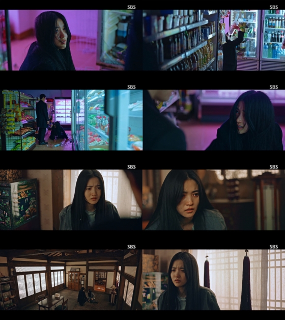 전일 방송된 '악귀' 10화에서는 김태리의 신들린 듯한 연기가 화제를 모았다. 초자병을 만지자 악귀에 빙의된 산영은 괴성을 지르며 미친 듯이 물을 찾는 모습으로 시청자들의 소름을 유발했다. 7일 동안 물 한 번 마시지 못하고 죽음을 맞이한 악귀가 폭주하기 시작한 것. 편의점으로 뛰어들어간 그녀는 피를 흘린 채 생수를 통째로 들이키며 보는 이들에게 오싹함을 선사했다.