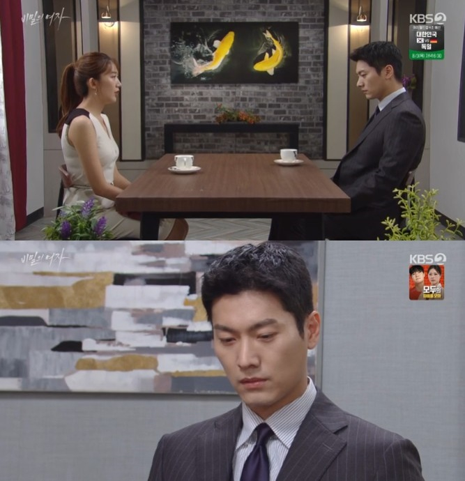 1일 방송된 KBS 2TV 일일드라마 '비밀의 여자' 100회에는 남연석(이종원 분)이 주애라(이채영 분)에 소리치는 모습이 담겼다.