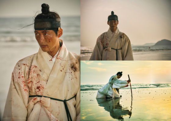 공개된 사진 속 이장현은 피투성이가 된 채 바닷가에 홀로 있다. 긴 칼을 바닥에 지탱한 채 힘겹게 일어서거나, 어딘가를 뚫어지게 응시하며 달려드는 모습이 인상적이다. 여기에 얼굴은 물론 옷 전체에 튄 붉은 핏방울, 상투 밖으로 흐트러진 머리칼이 이장현이라는 인물이 병자호란 전쟁 풍화 속에서 어떤 고난과 고초를 겪는지, 어떤 파란만장한 운명을 사는지 짐작하게 한다.