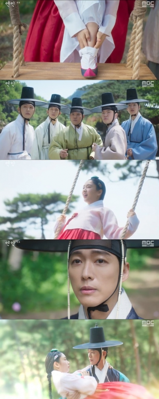 그러던 중 유길채가 그네에서 일부러 떨어졌고. 이에 도령들은 부리나케 그가 있는 곳으로 뛰어갔다. 하지만 유길채는 자신이 기다린 남연준(이학주 분)이 오지 않자 심통이 난 얼굴로 다시 그네에 올라탔다.