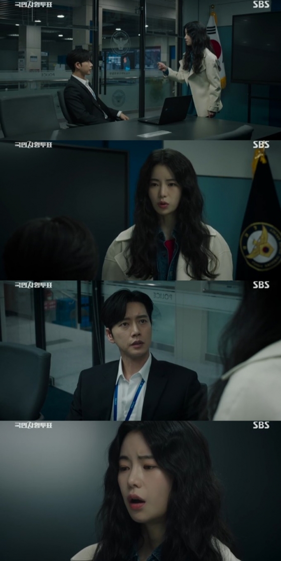 17일 방송된 SBS 목요드라마 '국민사형투표' 2화에서는 주현(임지연 분)이 김무찬(박해진 분)에 '국민사형투표'의 범인이 권석주(박성웅 분)라고 주장하는 모습이 담겼다.