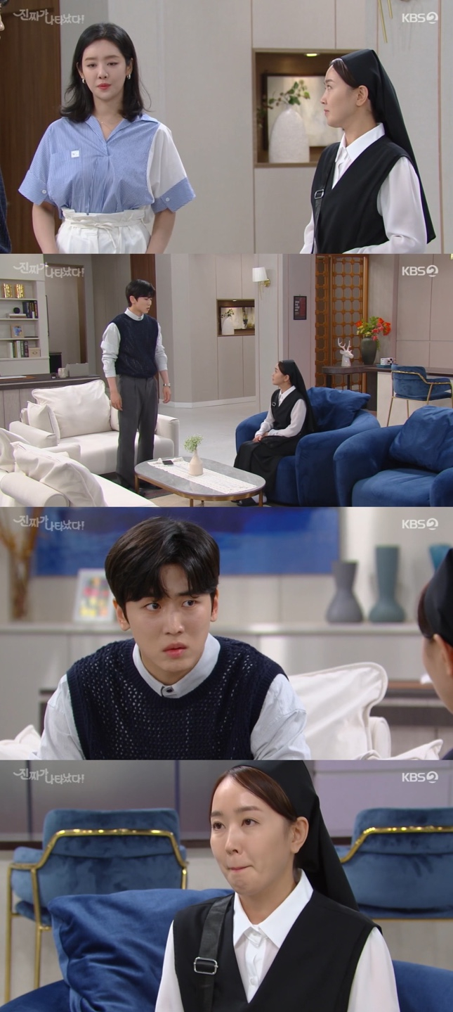 19일 오후 방송된 KBS 2TV 주말드라마 '진짜가 나타났다!'에서는 김준하(정의제 분)가 수녀인 친누나 에카(채민희 분)와 재회하는 장면이 그려졌다.