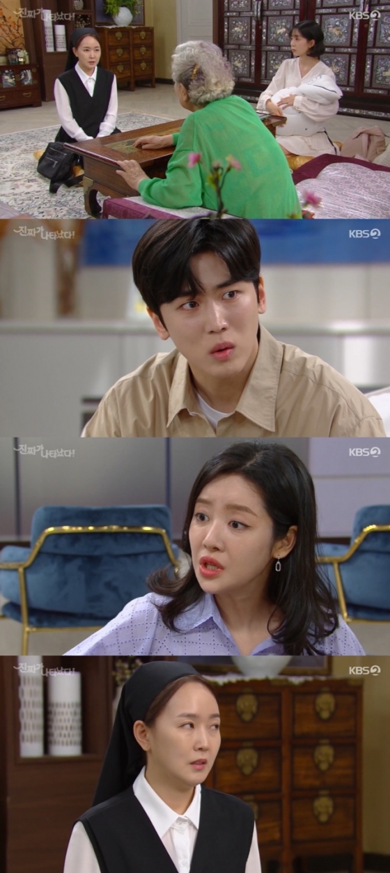 19일 오후 방송된 KBS 2TV 주말드라마 '진짜가 나타났다!'에서는 공태경(안재현 분)이 은금실(강부자 분)의 친딸 딸기의 딸인 수녀 에카(채민희 분)를 유전자검사연구소에서 만나는 장면이 그려졌다.