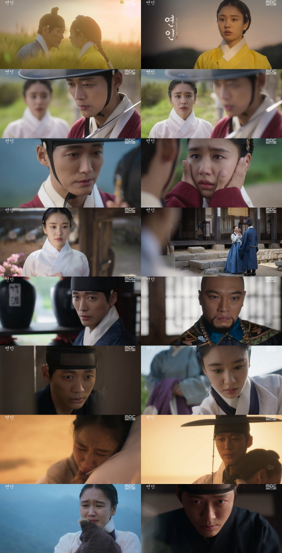 '연인' 7회에서 이장현은 유길채에게 입을 맞췄다. 이어 "날 연모하진 않아도 날 잊진 마시오"라고 고백했다. 유길채는 혼란스러웠다. 자신이 여전히 남연준(이학주 분)을 좋아한다고 믿었기 때문. 이에 유길채는 확인해 봐야겠다며 심양으로 떠나는 이장현의 뒤를 따라갔다. 그곳에서 유길채는 청군의 포로로 잡힐 위기에 처했으나, 이장현 덕분에 위기에서 벗어났다.