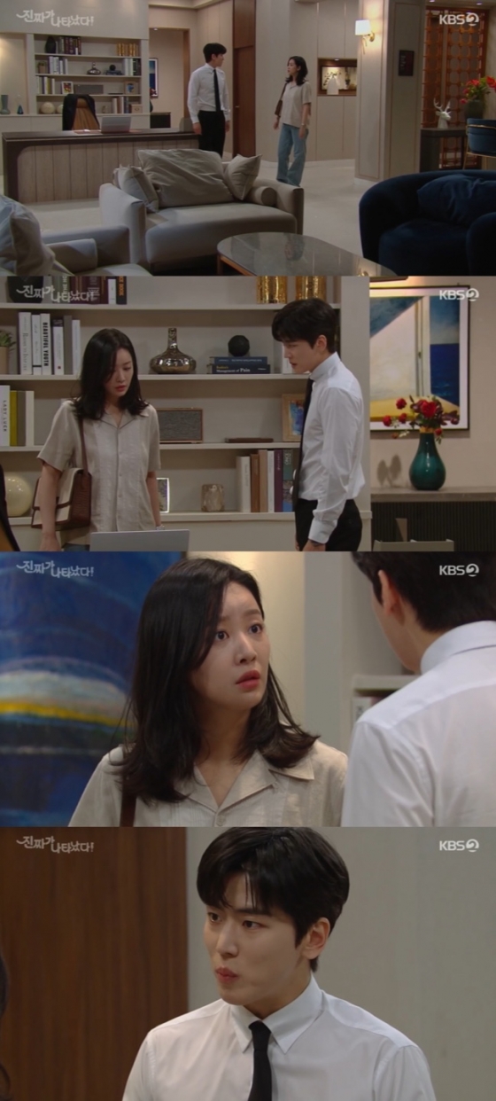 27일 오후 방송된 KBS 2TV 주말드라마 '진짜가 나타났다!'에서는 김준하(정의제 분)가 은금실(강부자 분)과의 유전자가 불일치하다는 검사 결과를 받게 되는 장면이 그려졌다.