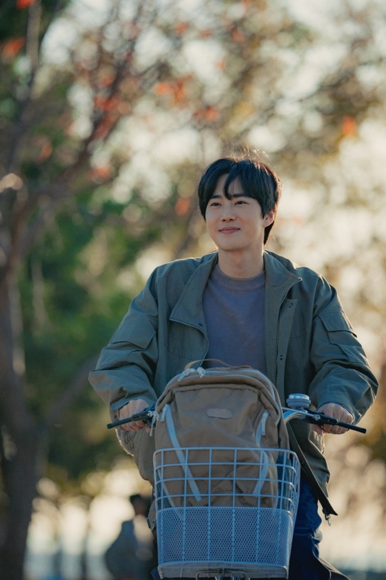 공개된 사진 속 수호는 봉예분(한지민 분)과 청춘 로맨스의 한 장면을 담은 듯 아름다운 풍경을 배경으로 자전거 데이트를 즐기는 모습과 함께 따뜻한 눈웃음을 보여줘 포근한 분위기로 보는 이들을 흐뭇하게 만든다.