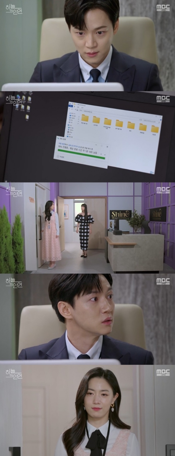 11일 방송된 MBC 일일드라마 '하늘의 인연' 103회에서는 하진우(서한결 분)와 윤솔(전혜연 분), 주윤발(안동엽 분)이 문도현(진주형 분)의 노트북에서 증거를 빼내기 위해 분투하는 모습이 담겼다.