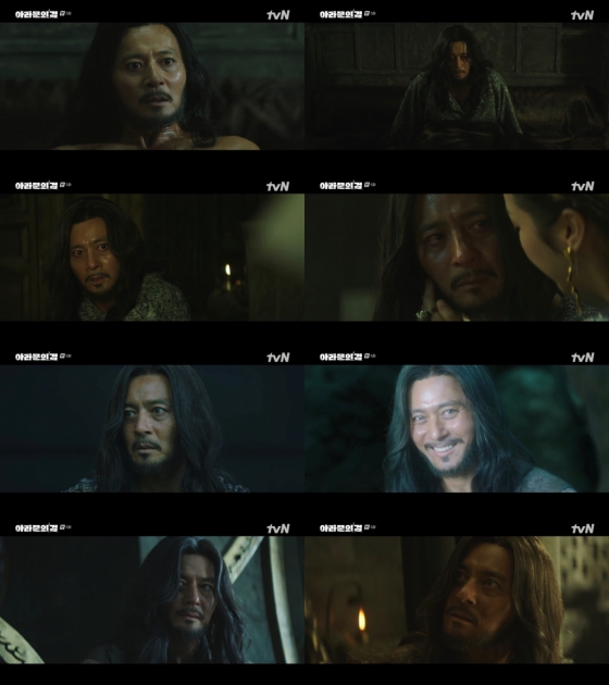 지난 23일 방송된 tvN 토일드라마 '아라문의 검' 5회, 6회에서 장동건은 그야말로 미친 연기력을 발휘하며 과몰입을 유발했다. 극 중 장동건은 극 중 아스달 연맹의 창시자이자 아스달 최초의 왕으로 군림한 타곤 역을 맡았다.