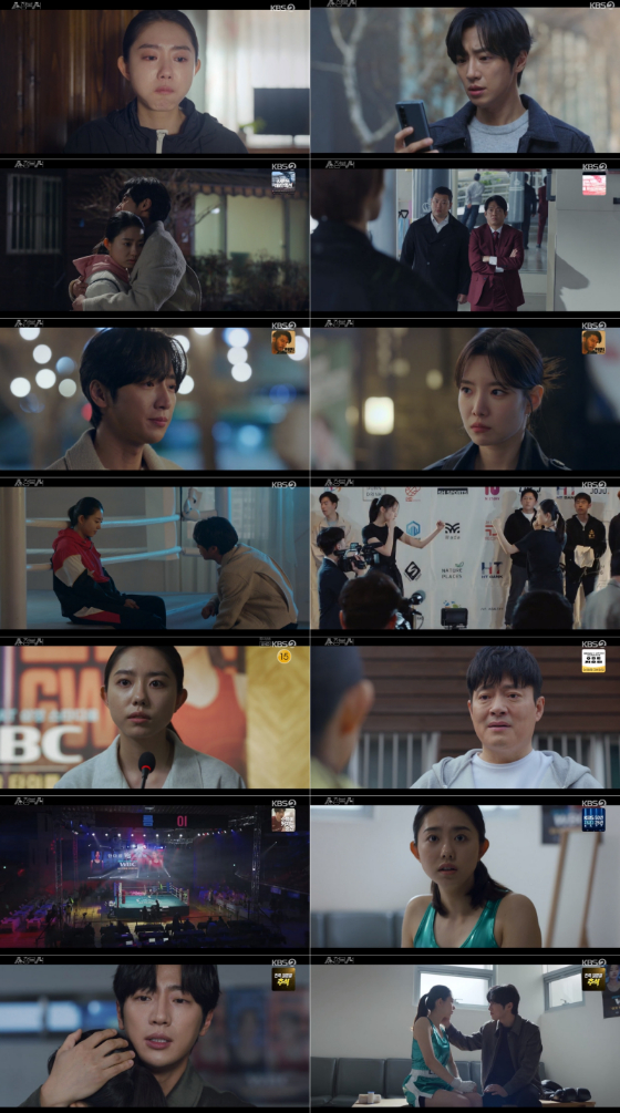 태영은 걱정하는 권숙의 얼굴을 감싼 채 "최선을 다한 패자는 도망자로 보이지 않아. 걱정하지 마. 어디서든 끝까지 보고 있을게"라고 위로의 말을 남기고 대기실을 나섰다. 그는 자수하기 위해 경찰에게 전화를 걸었고, 그 순간 오복이 보낸 일당들에게 핸드폰을 빼앗기는 충격 엔딩이 펼쳐졌다. 권숙과 아름의 최후의 타이틀 매치만을 남겨놓은 가운데, 과연 태영이 오복의 계략으로부터 권숙을 무사히 지켜내고 자수할 수 있을지 관심이 모아진다.