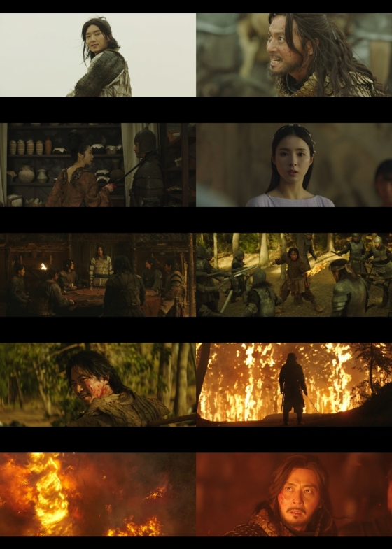 하지만 작전 수행은 예상보다 더 험난했다. 타추간(강신효 분)을 되찾고 칸모르를 넘긴 순간 타곤은 가차 없이 말의 목을 베 협상을 결렬시켰고 태마자(이운산 분)와 소수 정예팀은 불을 지피는 순간 적에 발각돼 난전이 벌어졌다. 불을 붙여야 하는 아고군, 막아야 하는 아스달군, 두 필사의 의지가 맹렬하게 부딪혔다.