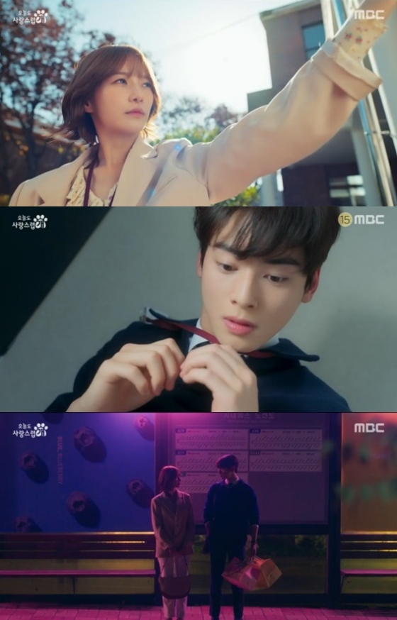 MBC 수요드라마 '오늘도 사랑스럽개' 3화에서는 한해나(박규영 분)가 진서원(차은우 분)의 비밀을 지켜주기 위해 남몰래 그를 도우는 모습이 담겼다.