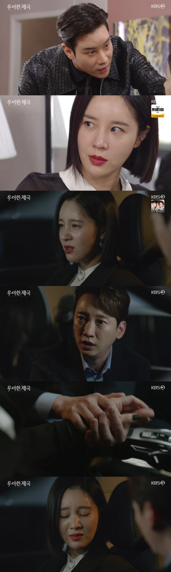 24일 방송된 KBS 2TV 일일드라마 '우아한 제국' 44회에서는 장기윤(이시강 분)이 재클린 테일러(손성윤 분)를 위협하는 모습이 담겼다.