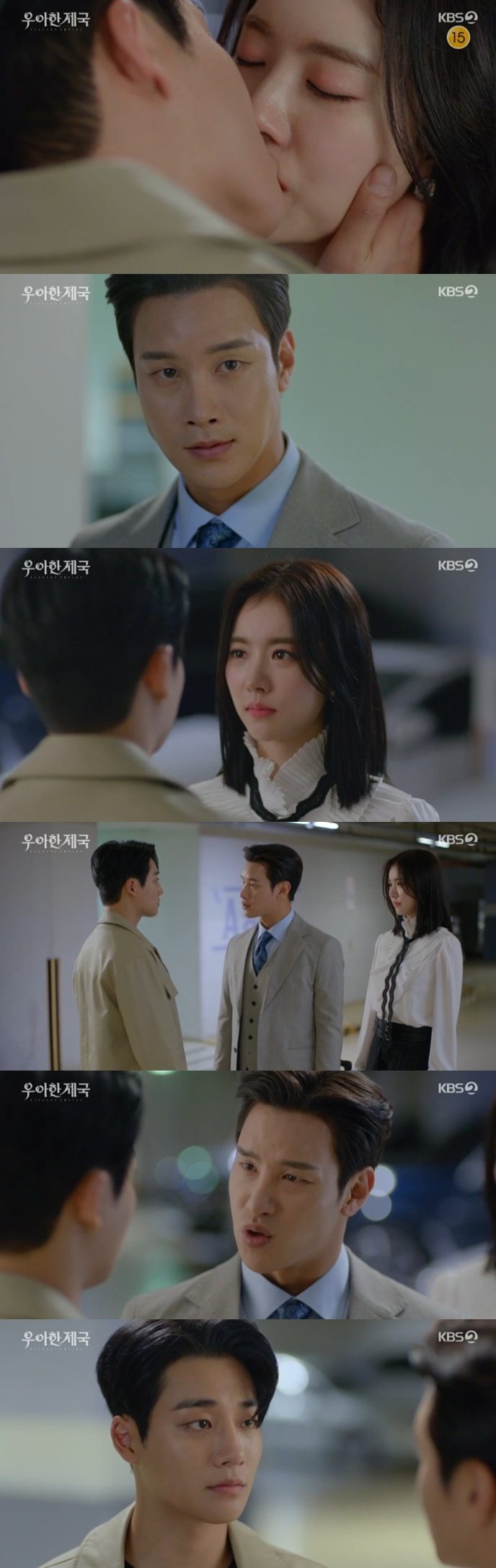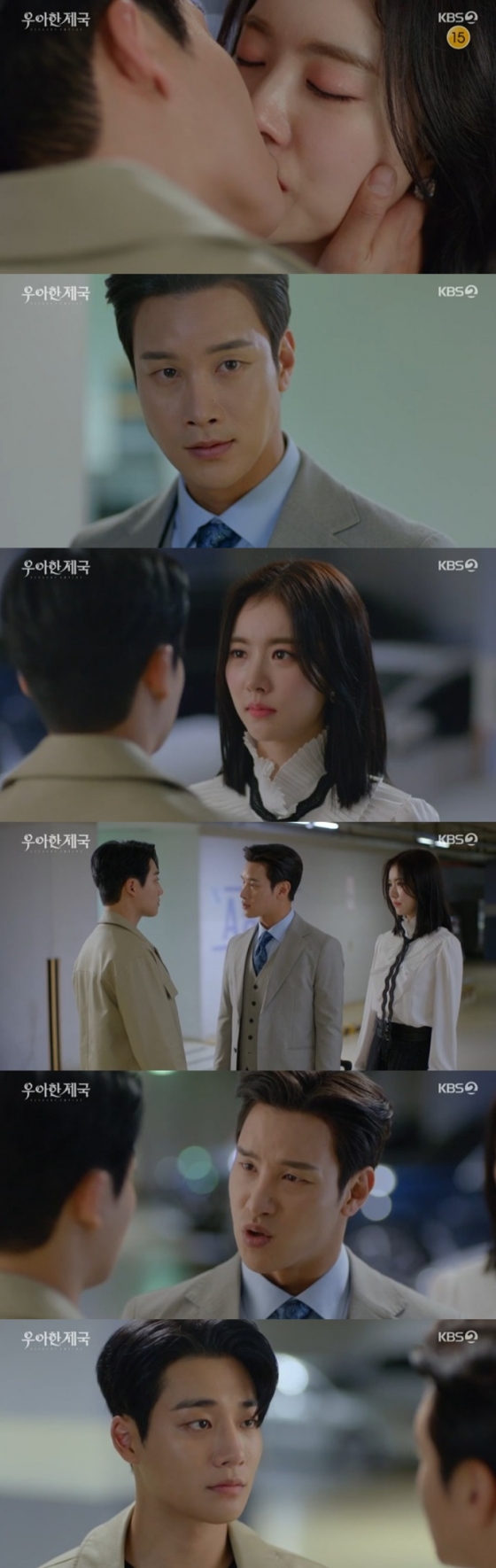 7일 방송된 KBS 2TV 일일드라마 '우아한 제국' 53회에서는 서희재(한지완 분)가 정우혁(강율 분)과 입을 맞추는 장면이 담겼다.