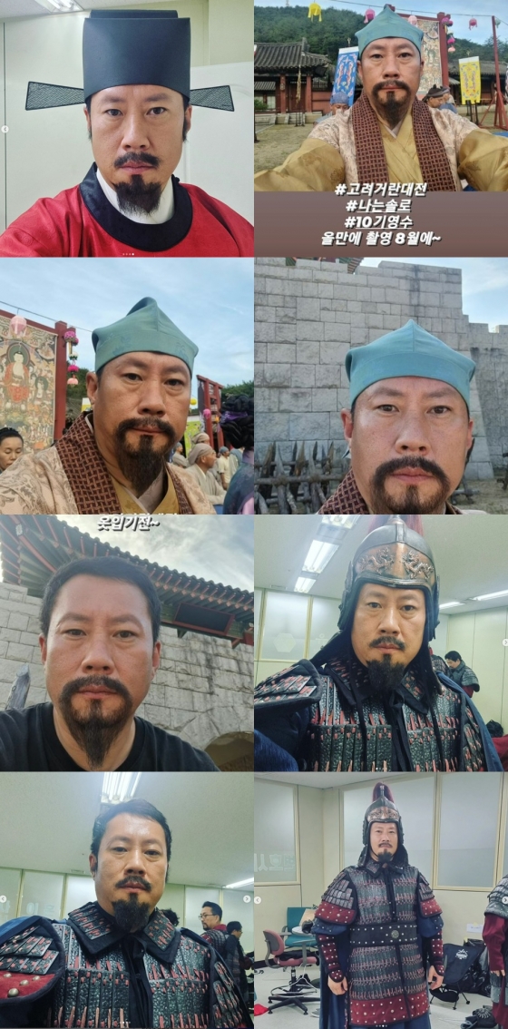 영수는 "9월 초였던거 같아요~ #고려거란대전 #강감찬 #최수종 전 대장군~!!"이라며 장군, 내관 등 다양한 역할로 변신해 눈길을 끌었다.