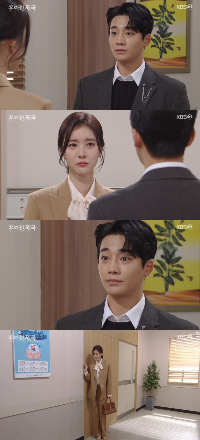 한지완이 강율의 이별 통보에 소리죽여 눈물을 쏟아냈다.