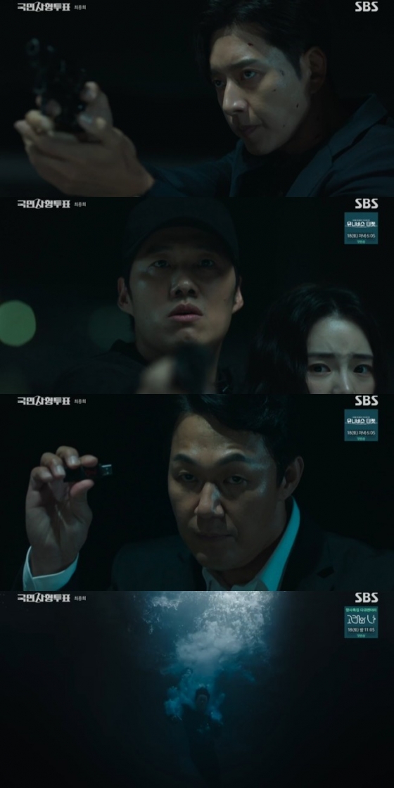 16일 방송된 SBS 목요드라마 '국민사형투표' 최종화에서는 권석주(박성웅 분)가 바다에 빠쪄 실종된 장면이 전파를 탔다.