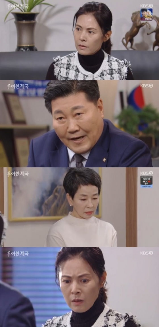 21일 방송된 KBS 2TV 일일드라마 '우아한 제국' 62회에서는 정우혁(강율 분)이 자신의 아들이라는 사실을 알게 돼 크게 놀란 양희찬(방형주 분)의 모습이 담겼다.