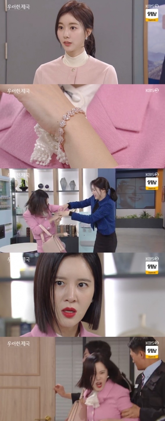 22일 방송된 KBS 2TV 일일드라마 '우아한 제국' 63회에서는 재클린 테일러(손성윤 분)가 서희재(한지완 분)를 의심하는 모습이 전파를 탔다.