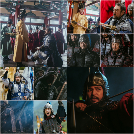 또 다른 스틸 속 부월을 하늘 높이 든 강조와 최사위(박유승 분), 장연우(이지훈 분), 황보유의(장인섭 분) 등 고려의 듬직한 장수들이 출정하는 모습이 담겨 있어 이목을 집중시킨다. 갑옷을 갖춰 입고 전쟁에 나가는 이들의 얼굴에는 반드시 거란을 물리치고 고려를 지켜내겠다는 굳은 결의가 느껴진다.