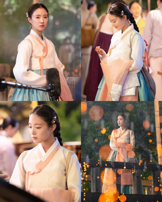 공개된 사진 속 이세영의 청초한 외모와 고운 미소가 시선을 사로잡았다. 그는 상아색 저고리에 옥색 치마를 완벽 소화하며 과연 사극 여신 다운 면모를 뽐냈다. 특히 다리 위에서 낙화놀이를 감상하는 이세영의 모습은 한 폭의 그림 같은 장면을 완성했다.