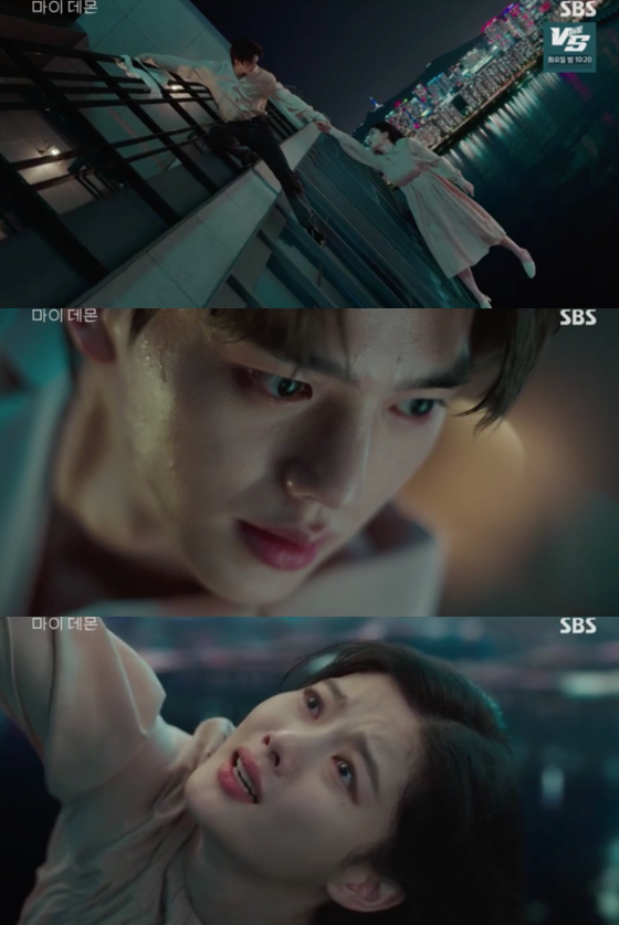 '마이데몬' 배우 송강이 난간에서 추락할 뻔한 김유정을 구해냈다.