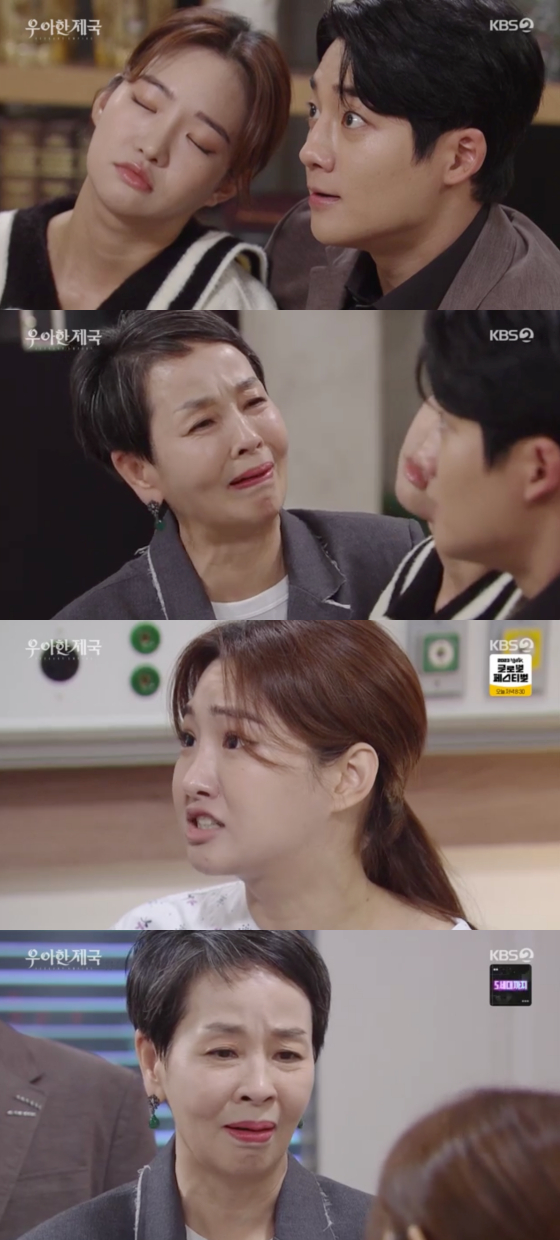 15일 방송된 KBS 2TV 일일드라마 '우아한 제국'에서는 빛나(김솔비 분)가 정우혁(강율 분)이 양희찬(방형주 분)의 친아들임을 알게 됐다.