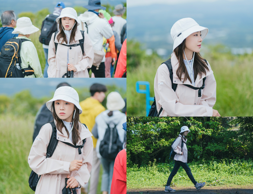 이와 관련 23일 공개된 스틸컷에는 '진짜 나'를 찾기 위한 삼달의 첫 스텝이 담겨 눈길을 끈다. 등산복으로 완전 무장한 채 제주 올레길 걷기에 나선 것. 평화로운 자연 속을 거닐며 내 안의 진짜 마음의 소리를 들어볼 심산인 듯하다. 그런데 야심 찼던 계획과는 다르게 영혼이 나가버린 삼달의 모습이 포착돼 웃음을 안긴다. 올레길을 걸으러 온 수많은 인파에 '진짜 나'를 찾기는커녕 정신도 못 찾고 있는 것.