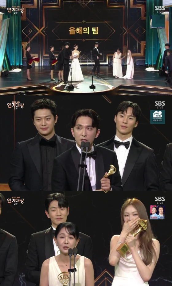 이날 올해의 팀 주인공은 '낭만닥터 김사부3'의 돌담즈였다. 윤나무는 "저희한테는 이게 대상이다. 감사하다. 좋은 팀워크를 위해서 항상 재밌는 위트와 부드러운 카리스마로 현장을 진두지휘해주신 유인식 감독님, 마음껏 뛰어놀 수 있도록 재밌는 놀이터를 만들어주신 작가님들 너무 감사하다"라고 고마운 마음을 전했다.