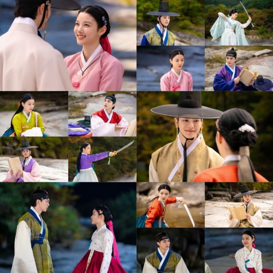 이날 공개된 미공개 스틸은 월심과 이선의 달콤하면서도 애틋했던 만남이 담겨 있어 두근거림을 안긴다. 검무를 추는 월심의 아름다운 자태는 이선의 시선을 단숨에 홀렸다. 우연을 가장한 반복되는 만남은 시청자들의 심장을 간질인 명장면. 월심에게 잘 보이기 위해 학문에 정진하기로 했다는 핑계를 대고, 책 너머 월심의 검무를 지켜보는 이선의 모습이 웃음를 자아낸다. 그런 이선을 알고도 모른 척해주는 월심의 마음이 심장을 몽글몽글하게 만든다. 저절로 서로에게 향하는 눈길은 풋풋한 설렘을 불러일으켰다.