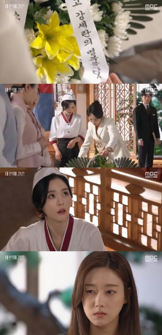 그 순간 윤보배(반효정 분)가 등장했고, 이에 강세란은 근조 꽃바구니를 급하게 숨겼다. 하지만 윤보배가 강세란이 떨어트린 리본의 글귀를 확인하고 정색해 긴장감을 가중시켰다.